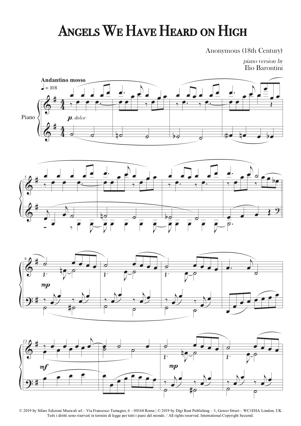 Ilio Barontini's piano version of Angels We Have Heard on High is included in Merry Christmas All over the World.